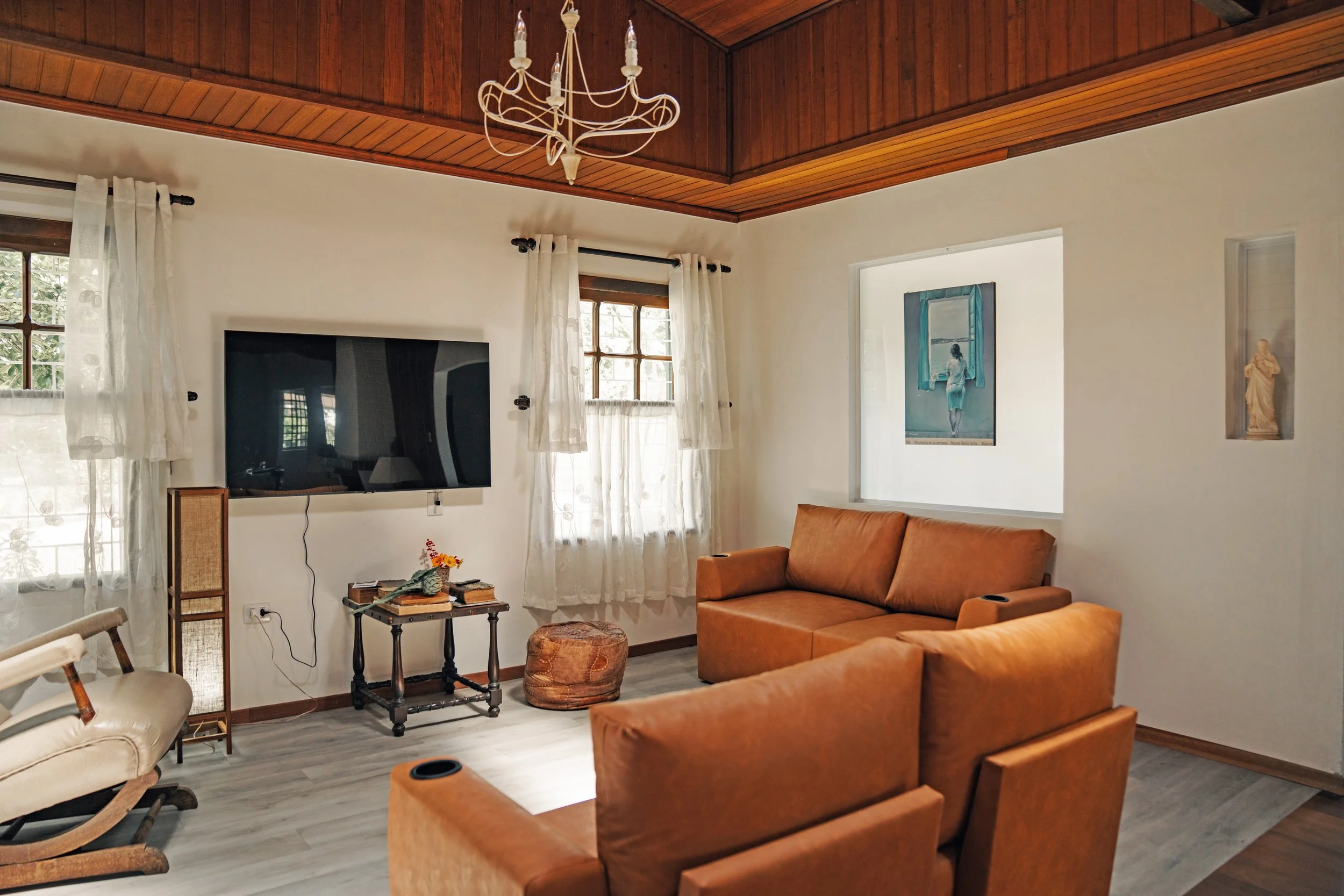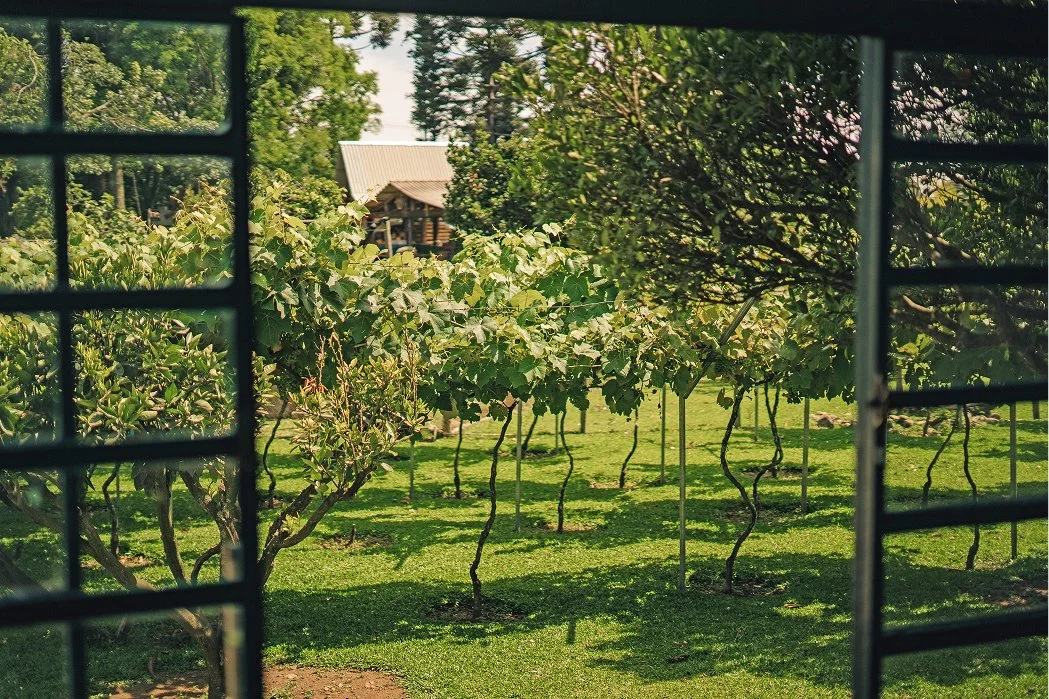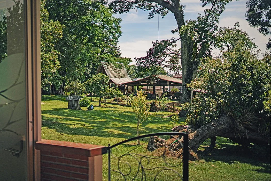13.000m² com bosque, gramado, parreirais, hortas, canteiros, pomar, rancho, galpão e cozinha rural disponíveis para usufruto dos hóspedes, visitantes e moradores.